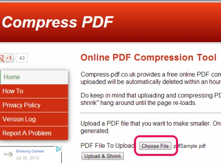 Here is the beautiful interface of Compress PDF visible in above screenshot. There are just two main buttons available using which you can compress a pdf file: Choose File and Upload & Shrink.
