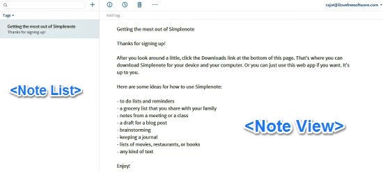 Once the signup is done, you are straight away logged into your Simplenote account. That’s right! No activation email, no extra profile to set up, nothing.