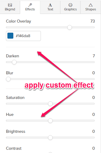After adding a background, you can proceed to apply custom effects to the image. For this, you can simply select a color first and then start adjusting the Color Overlay, Darken, Blur, Saturation, Hue, Brightness, and Contrast. This will change the color tone of the background and apply a smoothing filter over the image.