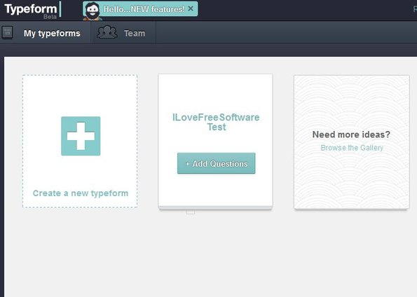 Dashboard where you can manage created form can be seen on the image down below. Typeform is currently in beta and while its in beta users can create 3 forms, each form can have 20 questions and 5000 participants max can give their input by solving forms. Unlimited features are unlocked if you participate in a survey offered by this free online form creator. To create a new form, you just need to click on the Create a new Typeform button.
