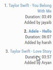 The left side of the page will show a list of all the videos which have been played in the room so far. The videos will also show the names of your friends who played them. A screenshot of this can be seen above.