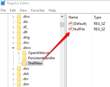 Step 3: After creating the ShellNew key, you need to create a String value. When the String value is created, rename it as “NullFile“.