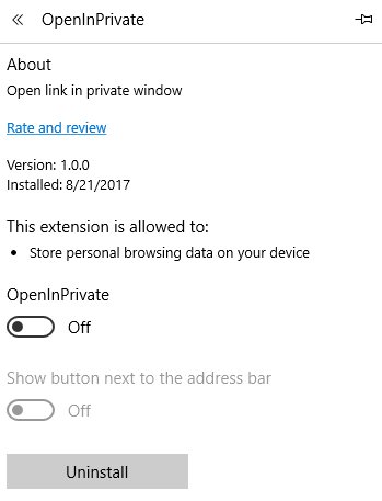 OpenInPrivate is a nice Windows 10 app/ extension. It is easily installed in Microsoft Edge browser and after installing all you have to do is right click on a link to open it up in a private window. The advantage of opening a link in a private window is that your activities on that page will not be recorded in your browser history. So the third party websites keeping track on your data would not be able to track any details you enter using the private window.