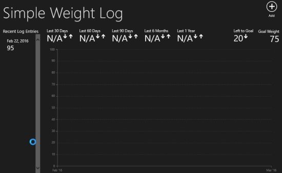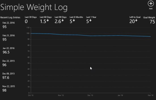 When trying to loose weight we always forget to keep a log of how we are doing. We measure our weight once when we start exercising and that is it. We do not regularly check if there has been any loss or gain. Keeping track of weight is important when you have started exercising and want to loose weight. Simple Weight Log is a free Windows 10 app which lets you track weight loss through a graph. The app let’s you record your weight and shows the weight loss in a graph form.