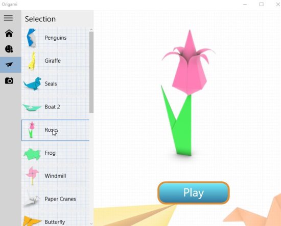 Origami is a free Windows 10 Origami app to learn this beautiful craft of paper folding. Everyone is fascinated with this paper folding craft as the results are so pretty. Adults and kids both like this art of paper folding and making beautiful things. So this app will come in handy when you decide to create something or even when you want to teach kids how it is done.
