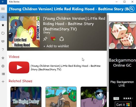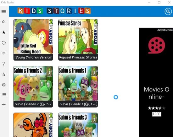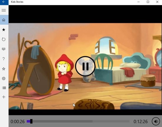 Kids Stories is a Windows 10 story app for kids where kids can watch video stories. The app lists some popular stories, which you can just select and watch. The stories are in video format and are narrated beautifully. You can add the stories you like to your favorites list. The app will definitely be a good way for children to hear stories.
