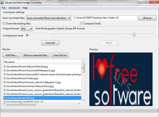 Advanced Batch Image Converter is handy to batch convert images and also compress them at same time. Its feature to provide huge list of output formats and maintain output images size using slider is handy.
