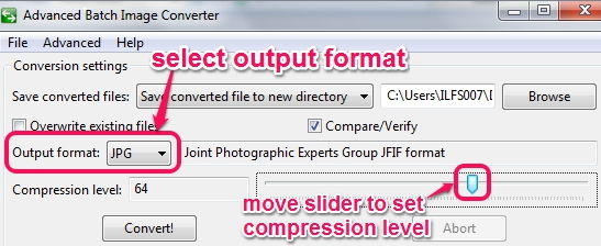 Advanced Batch Image Converter (beta) is used to convert images in bulk and also helps to set compression level for selected output format. This is its unique feature that is not present with many similar tools. Compression level feature is quite useful to reduce size of input images (based on selected level) and it can be managed easily with the help of a slider.