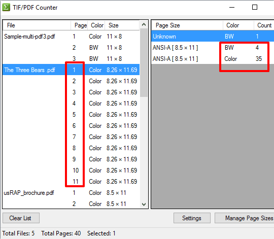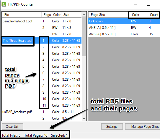 TIF/PDF Counter can be handy for sure when you want to quickly check how many total pages are available in a single PDF or multiple PDF files. Showing the size of pages and viewing if a page is BW or color are the bonus features included in this software.