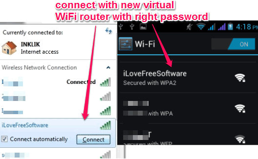 Your connection will be visible to each and every WiFi enabled device that are available to your virtual hotspot surroundings. Now to connect with your virtual WiFi hotspot, your friends need to enter the correct password.