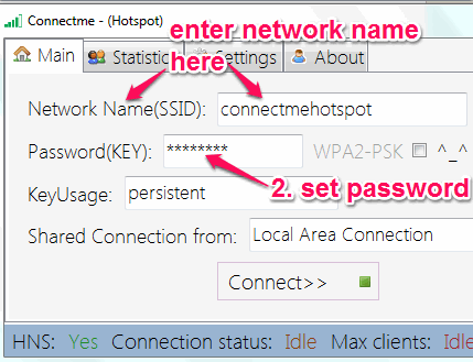 Connectme – (Hotspot) is a free software that helps to create virtual WiFi hotspot to share your Internet connection. It can easily help you to share you WiFi connection, LAN connection, dial-up, and other connection by creating virtual hotspot. Virtual hotspot comes in handy when you want to give access to your Internet connection to someone, but don’t want to share original credentials. Hotspot created with this software can be access by every wifi enabled device (laptops, PCs, mobile devices, etc.).