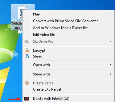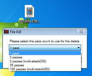 This free secure file deletion software doesn’t have a “main interface” for you to open up using a desktop shortcut. The only way how you can access it is from the right click context menu when right clicking on a file. After installation you should have the Delete with FileKill option added to the right file click context menu.