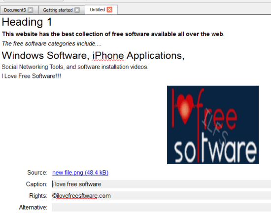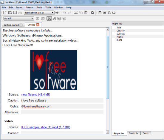In above screenshot, interface of this free eBook creator is visible where I created a document for generating my eBook.