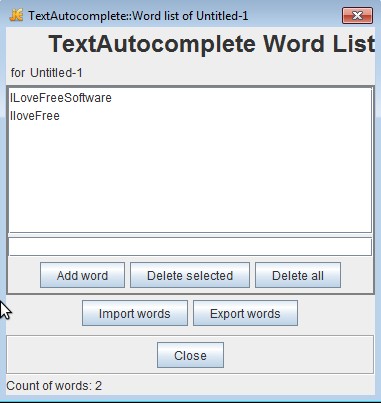 This is the word list that we created. To add words you need to type them out just below the list and then click the Add Word button or you can click the Import Words option to import words using a text document.
