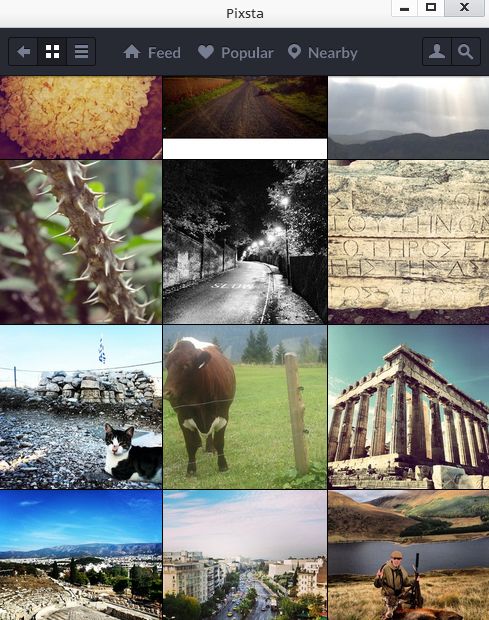 On the image down below you can see the interface of this free Instagram desktop client. It has a very simple interface, without a lot of menus and options. Strip at the top is basically the only thing that could be called a menu. From there you can switch between your own Instagram feed or between the publicly available “popular” and “nearby” categories which display the currently trending Instagram photos and also photos that were posted by people near you.