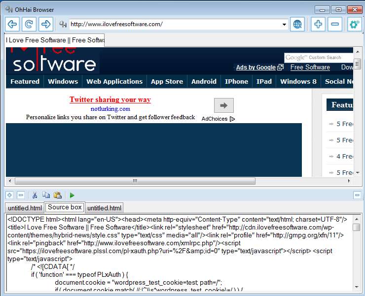 OhHai Browser is a free portable web browser for Windows which is very lightweight, it’s just 3MB in size. Despite of its small size, this free web browser offers a lot of interesting features like for example the ability to lock the browser screen and password protect it. Built-in web editor is also available, which means you get both HTML editing and preview all inside a single web browser.