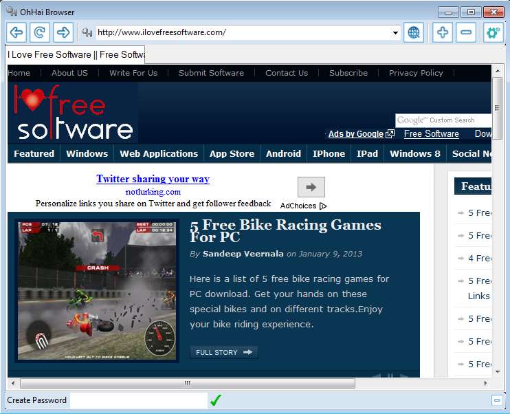 OhHai Browser should be used by all those who are looking for a quick, easy and lightweight web browser. It might take some time getting used to the way that things are done, since you don’t get all the features that you get in Firefox, namely plugins. Password protection of the interface will give you extra protection or just not allow anyone else to use the browser. Give it a try and see how it goes. Free download.