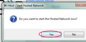 - Click ‘OK’ on that pop up window and another small window will open (see the below screenshot) asking you whether you want to start your hosted network now or not. Tap on the yes button to start it.