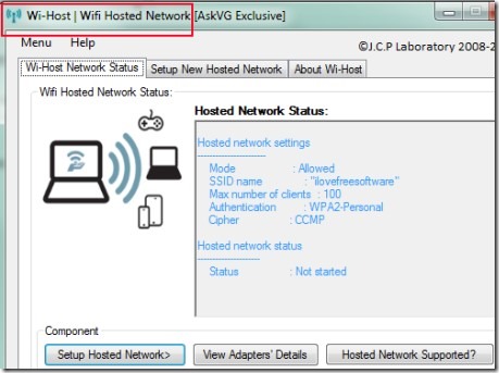 Wi-Host is a portable software for Windows that lets you create wi-fi hotspot on your PC or laptop so that you can share your internet connection with devices that supports wi-fi facility such as tablets, mobiles, or other computers/laptops. Creating a wi-fi hotspot is so easy with Wi-Host as there is no complex process neither any technical knowledge needed. With some simple steps, you will be able to create wi-fi hotspot.