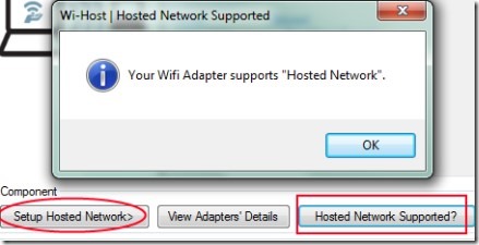 - On its main interface, you will find two main tabs at the bottom part: Setup Hosted Network and Hosted Network Supported. Hosted Network Supported tab is used to check out whether your wi-fi adaptor supports hosted network or not. Click this tab to check out. If it shows you a message that it is supported, then you can create wi-fi hotspot on your PC or on laptop.