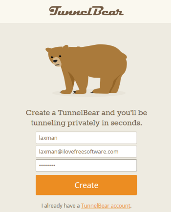 Step 3: Using that webpage, you can create a free account on TunnelBear website. This is mandatory to get free data per month to browse the websites using TunnelBear.