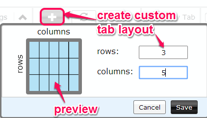 - If you want to create a custom layout, simply use ‘+’ button. After this, you need to enter required number of rows and columns at required place. Once done, save the changes. In the similar way, you can create different layouts.