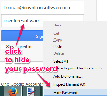 It just takes two clicks to show the hidden password. You can use its right-click context menu option to show/hide your password. In screenshot below, you can see how easy and quick process it is to see the hidden password using this add-on. It is also worth mentioning here that this is not my correct password ;)
