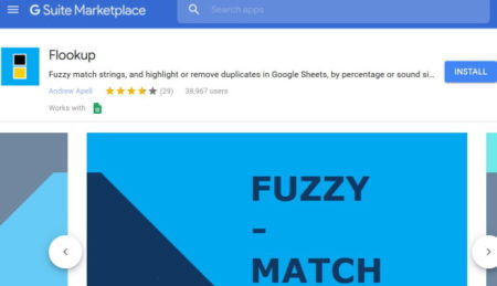 This article covers a Google Sheets addon for performing fuzzy match, removing duplicates, etc. Flookup is a Google Sheets addon which can perform the above actions on your data. Flookup is a verified addon for Google Sheets which is simple to use. The best feature of this addon is that it is not affected by typos in the data. It will search and match data regardless of mistakes or typing errors.