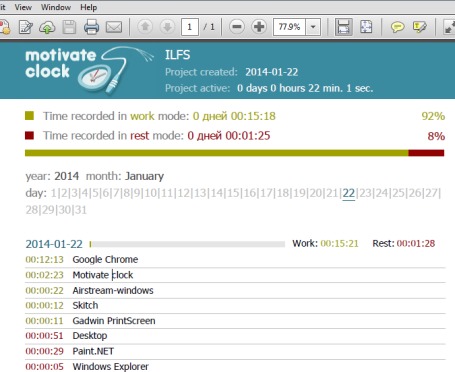 Note: You can also monitor time spent on web applications. But for this, you have to install Motivate Clock to your web browser.