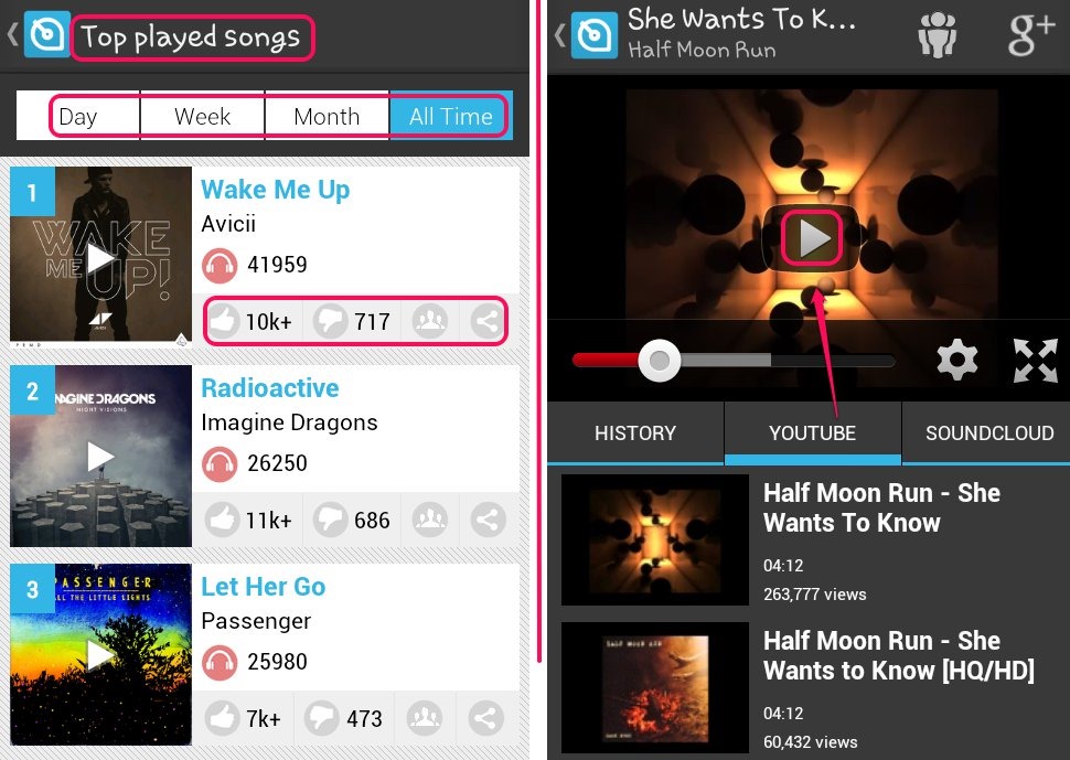 Soundwave is an amazing Android app that lets you share music preferences with people, like and dislike songs, check what people are listening to in your area, and watch videos. I was able to discover so many new songs using this Android app. One of them is currently set as my humdinger. I love this super interesting app so much that now I cant stop listening to music.