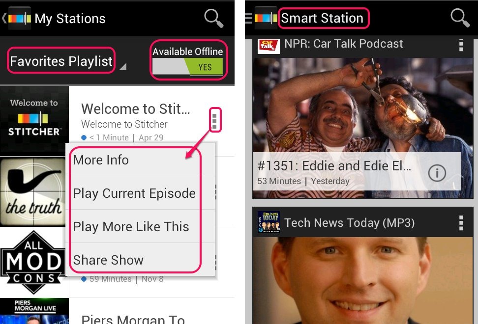 Key Features of Stitcher Radio for Podcasts App for Android:
