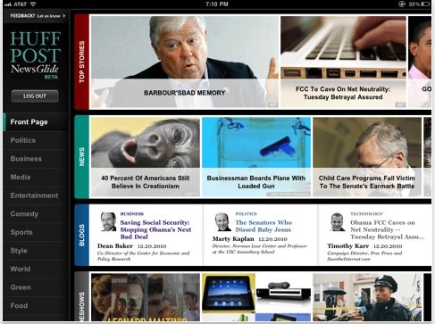 For a free news iPad app, the Huffington post is really informative and easy to read through, especially with innovative features like the “synchronized scrolling” which make it easy to locate content from different sections of this free news iPad app.
