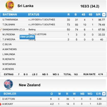 When launch this website, you see a small box on the right side of the web site. Th formats in tabs the cricket matches played or in progress in that box. You can see brief scores of the match there. However, if you wish to see complete and detail score board, then click on interactive scores and a pop up dialog box will open. There you can see complete cricket score online. This online cricket scoreboard service will let you know everything that you need to know about scores of a particular match.
