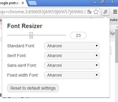 Changer here refers to not just a change in font size, but also to a change in font type. Left click on the extension icon and move the slider to change font size. Note that when you change font here, it’s changed on all websites, not just the one you have open.