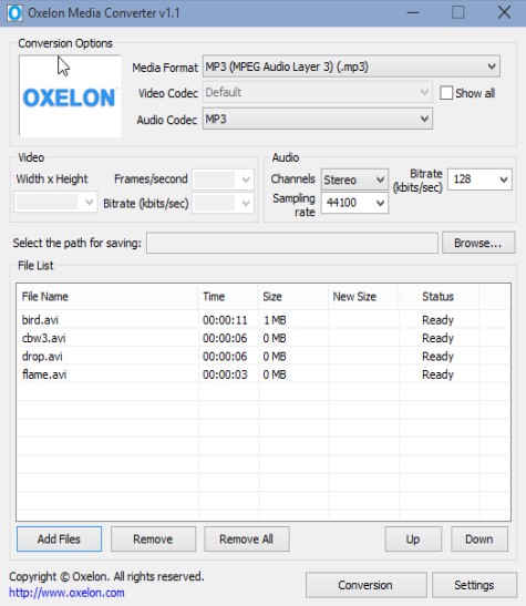 Oxelon Media Converter is an advanced media converter, not just audio extractor software. It can be used to convert between all the more popular audio and video formats, but what we’re interested in is audio extraction, and that’s what you see setup on the image down below.