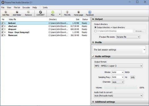 Pazera Free Audio Extractor is another specialized audio extractor software that’s fully functional on Windows 10, and more advanced than AoA Audio Extractor.