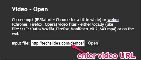 Step 2: After entering the video URL, click on the “Open” button to open up the video with the built-in video player. You can now select the “Play” button to play the video on the website. Below the video player, there will be 3 control buttons which can be used to rewind 100 milliseconds, play 2 secs and move back to the current position, and rewind the video playback for 3 seconds. You will also see a slider to adjust the volume of the playback. No keyboard shortcuts are available.