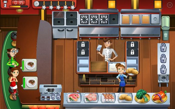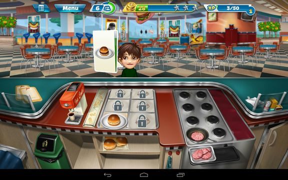 Cooking Fever is a cooking game for Android with great graphics, easy to understand gameplay and excellent level progression. Here the player starts off by managing a small burger joint where at first there’s just 1 cola dispenser and 1 cooking stove.
