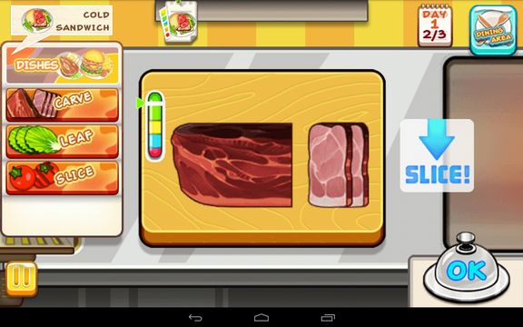 Rising Super Chef is a cooking game for Android similar to Cooking Fever. Customers are coming in to your small dinner with limited cooking equipment and you need to serve them food, earn money and expand business to new locations.