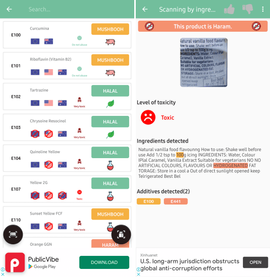 Most of these apps don’t even have a registration or sign up. You just place the OCR camera in front of some food item or a picture you found on the internet. These apps can’t only work with food items and ingredients, but they can also scan for additives that are present in some products. Apart from scanning, in some of these apps, you will find searchable list of halal and non-halal ingredients with their code.