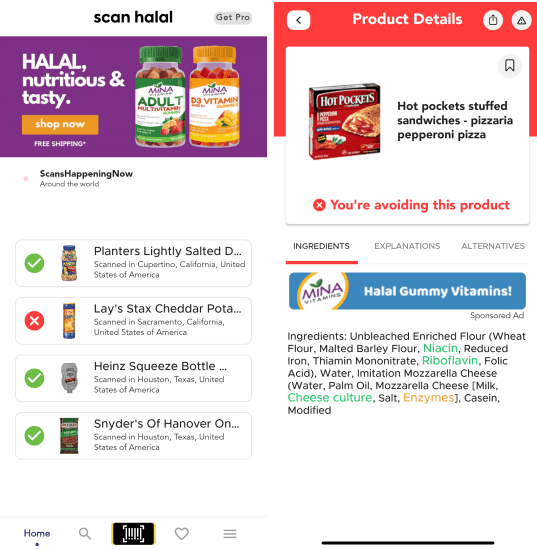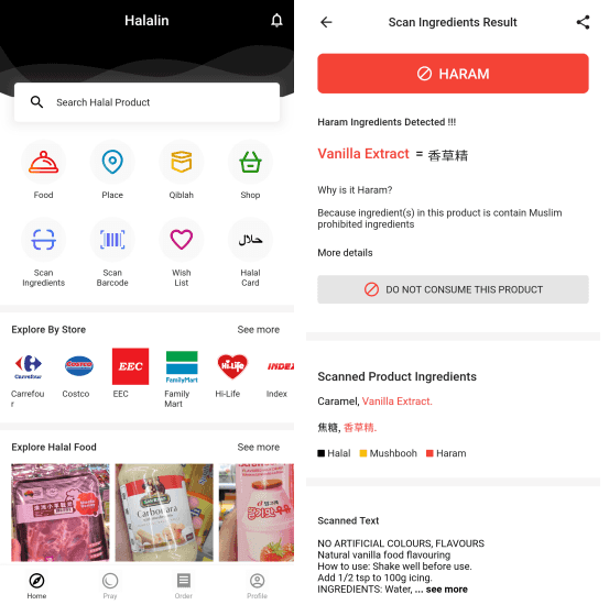 Scan Halal has a bar code scanner that you can use to scan food packets for their halal status. This app has a freemium version and if you upgrade then it will even let you find halal alternatives for non-halal food items or ingredients. Just like Halalin above, this app has a food explorer which you can use to find halal products to consume.