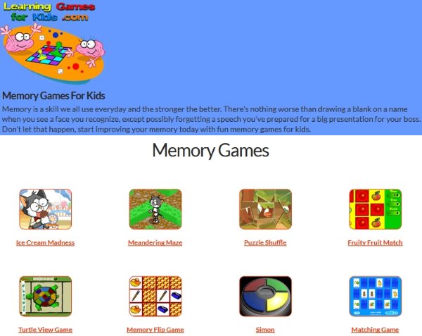 Learning Games for Kids have a nice section on memory game which can be checked out from this link. As you can see in the screenshot above, there are quite a few games listed under the memory games section. Each game has a different game play. So you will have to check out all the games one by one. All the games are fun to play and challenge you in a different way.