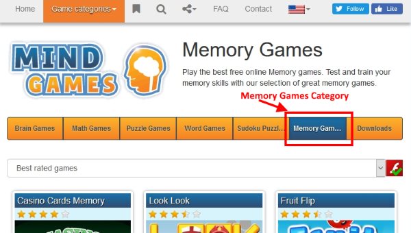 Mind Games is a good website to play lots of memory games. This website has a complete section on memory games which can be checked out here. There are more than 25 memory games in this section, as pointed out in the screenshot above. So there is a lot of choice for kids to play. There are games like look look, fruit flip, casino cards memory, dinosaur eggs, memory challenge, memory trainer, wild animal pairs, etc. Each of these games is pretty fun to play.