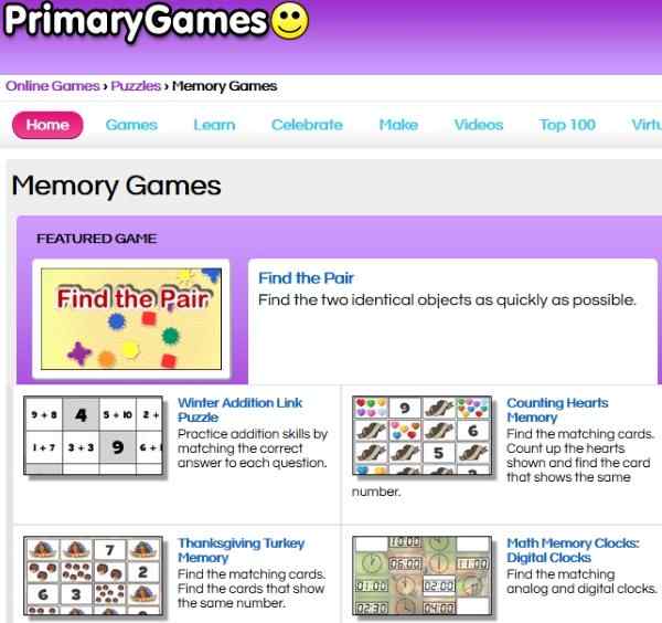PrimaryGames is a fun website with a section of memory games which can be checked out here. There are lots of memory games to play. Each game has a different gameplay, which makes it fun. I tried out a couple of games like find the pair, path memory, counting hearts memory, and sequence memory. I found all of them pretty good and engaging.