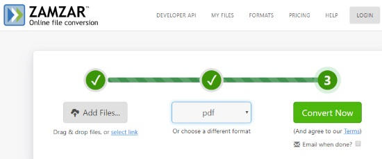 Zamzar is a website to convert PDG to PDF files. Here, you just need to drop the ODG file in the converter. You can browse ODG file from your computer or enter the file link in the converter.