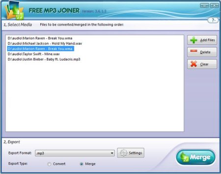 Merge MP3 is another free mp3 merging software which allows you to join mp3 files into one single file. This mp3 merging software comes with an intuitive interface and offers you a high-speed merging. With the help of this mp3 merger you can even mix the merged MP3 file into audiobook format M4B which can be played on iPod/iPhone. This free MP3 merger even allows you to add complete directory of MP3 files for joining them. It’s capable enough to find and warn you about any duplicate mp3 file which gets added to the list more than once. Download Merge MP3 for free.