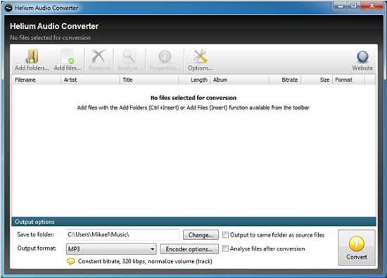 Helium audio joiner is a free audio joiner which straightforwardly allows you to join MP3 files into a single large file. With the help of this free audio joiner, you can even choose several audio files in different formats and join them all together to make a single audio file. It basically supports format like MP4, AAC, FLAC, M4B, MPC, WMA, etc. This free audio joiner allows you to even choose the output format for joined file. The interface is quite simple and user-friendly which is available in multiple languages.