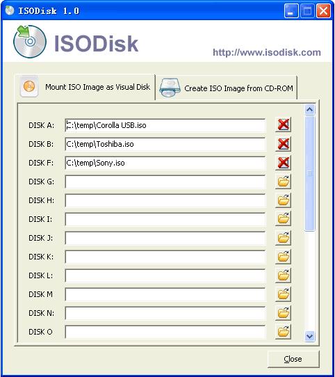 ISODisk is a free disk image file tool which helps you to create virtual drives and you can even open ISO files. This free tool allows you to create up to 20 virtual drives. You can even create ISO files directly from the CD with ease. This free software comes with a completely simple and user-friendly interface, so even the non-technical users can easily work on this free software. ISODisk, from the name itself its clear that this free software only supports ISO format. Download this software for free.
