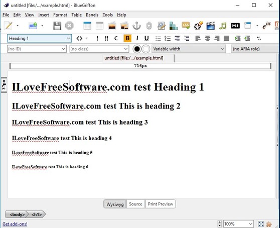 BlueGriffon takes it one step further and includes a full-fledged WYSIWYG editor which allows for graphical creation of HTML web page. This means that you can create web page layout and content similarly to how you create a Word document.