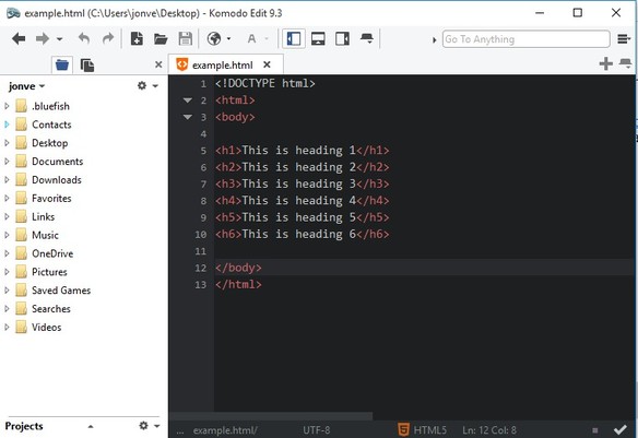 Komodo Edit is a free version of Komodo IDE, with fewer features and functionalities. Interface of Komodo Edit is nicer than the one offered by Bluefish. Abbreviation toolbox is available for quick insertion of frequently used HTML, PHP, Ruby, Python, Javascript tags and code snippets.